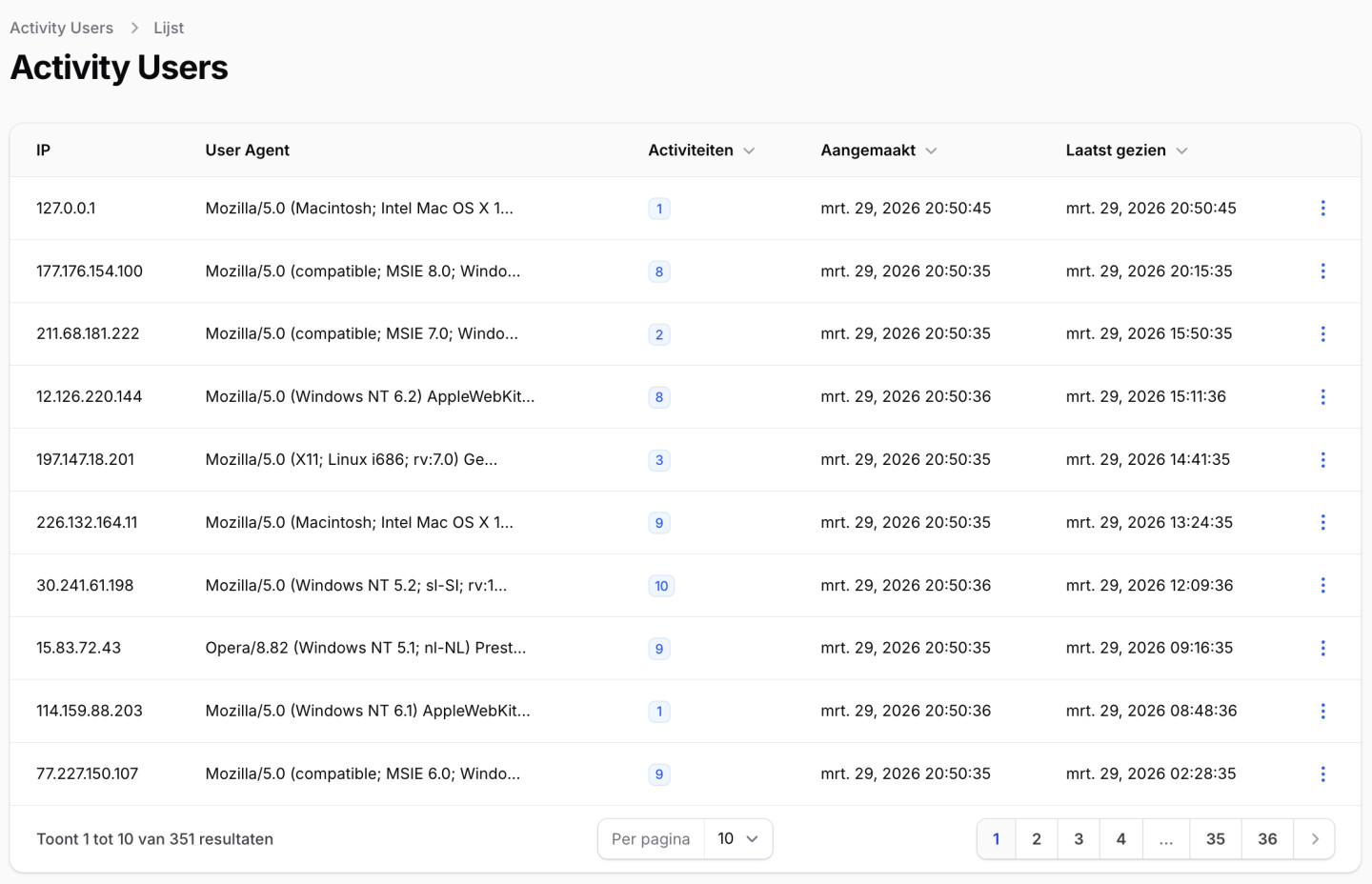 Bots en geautomatiseerde bezoekers worden automatisch gefilterd, zodat je altijd betrouwbare cijfers ziet.